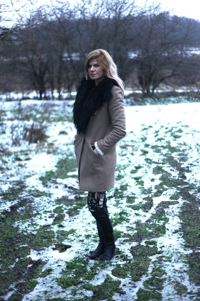 Wearing: Oasis Coat and Boots, Zara Pants, Topshop Faux Fur Collar
