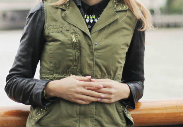 Wearing: Zara Waistcoat, Oasis Leather Jacket, Elisa Boots, H&M Necklace and Shirt, Atmoshpere Skirt