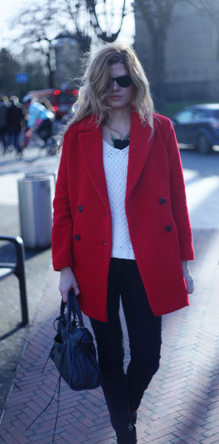 Hey Guys,These pictures are definitely NOT very fresh myself. After a night out, sleepy and tired and even feeling cold. Well, I guess these do not give too much fashion satisfaction but at least you can see what I wear on days like this. The most comfortable jeans I have, jumper from Zara a the most comfortable boots by Sam Edelman. Thank you red coat for giving me a bit of twist and colour.