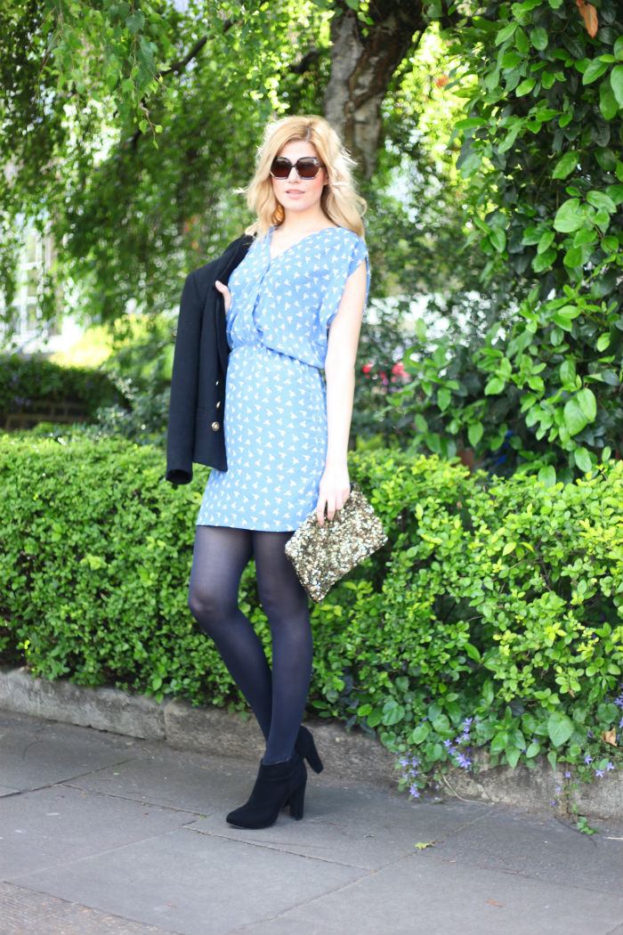 Wearing: Nu New York dress, Zara clutch, Gianfranco Ferre sunglasses, New Look boots, Vintage blazer