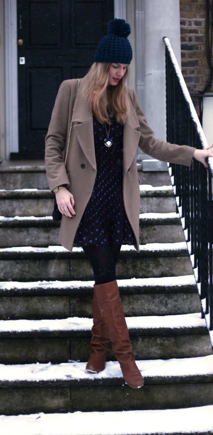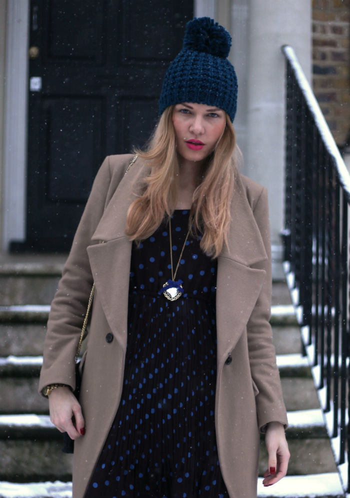 I guess not a typical outfit for a snowy weather but you would be surprised how warm this dress can be. Although it looks light it actually has got three layers and mainly it is super cute. I must have had one of those days when I just feel to wear something totally different. One of those cosy, cute feelings when you want to wear dots. If it does not make sense, do not worry. I can sometimes talk nonsense :DDD