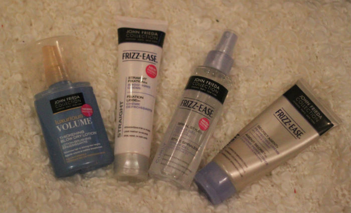 Nasledujici produkty slouzi spise k uprave. Abych se priznala, pouzivam je minimalne, nemam totiz cas si poradne upravovat vlasy. Vetsinou si vlasy nefoukam, pokud nejsem zrovna rano ve fitku a ani tam te uprave moc nedavam. Ale produkty samozrejme mohu doporucit, protoze kdyz se obcas rozhodnu, ze si vlasy upravim, tak tyhle jsou opravdu vyborne. John Frieda Thickening blow dry lotion je skvely vyrobek na vytvoreni objemu pri foukani. Druhy produkt z rady Frizz-Ease slouzi k dokonale hladkemu vzhledu. Dalsi dva produkty jsou take z rady Frizz Ease a prvni je stylingovy pripravek ke konecne uprave ve spreji a ten posledni si zaslouzi jednicku s hvezdickou. Secret Agent a ten sebou nosim v kabelce temer porad. Je to opravdu skvely produkt, ktery vas zachrani od vlasove pohromy at jste kdekoli.
