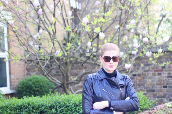 I went for brunch with friends on Sunday. And as the weather seemed to be tricky sunny but cold I picked midi pleated skirt and leather jacket. Maxis and leather are one of my favourite combinations.