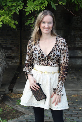 Lena is wearing Roberto Cavalli shirt, H&M skirt, vintage belt and DKNY clutch.