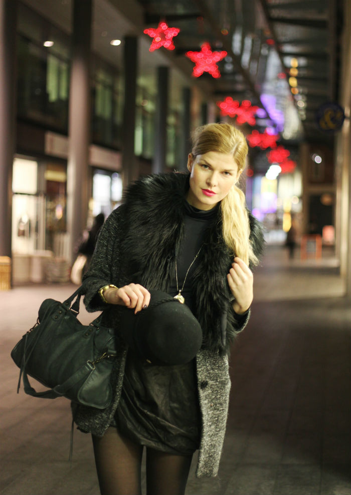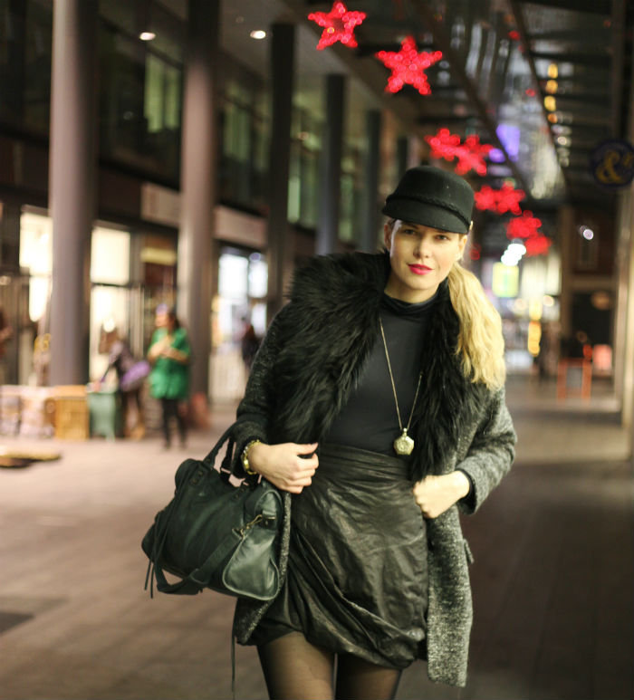 Wearing: All Saints Skirt, Atmosphere Hat, Topshop Coat, Balenciaga Bag, New Look Necklace, Zara Top