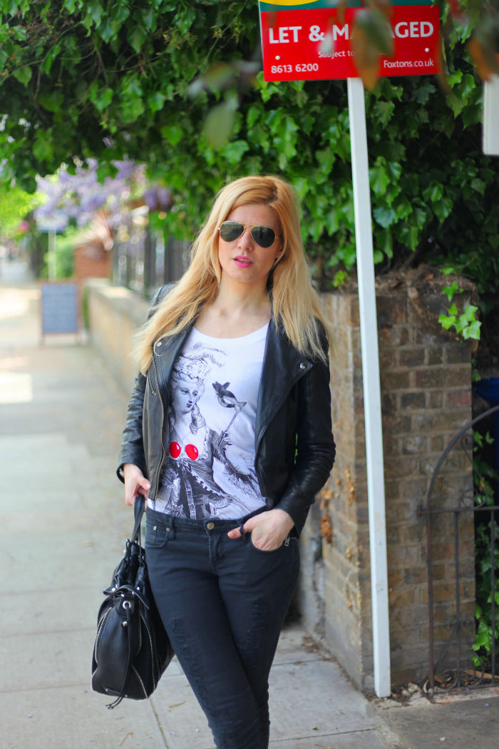 Wearing: Helmut Lang jeans, Vivienne Westwood Tshirt, New Look boots, Francesco Biasia bag, Oasis jacket, Rayban shades